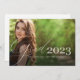 Eine trendige, elegante Ankündigung des Abschlusses 2023, die zwei Fotos der Uni oder High School Absolvent umfasst. Elegante, moderne weiße Schrift und Jahr auf einem Overlay zusammen mit zwei Fotos des Absolventen. Sie können die Formulierung auf der Kartenrückseite anpassen, um dies entweder zu einer einfachen Ankündigung des Abschlusses oder zu einer Party Einladung zu machen. Ein stilvolles und einfaches Abschluss-Design für die Klasse von 2023!