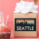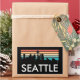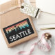 Der Vintage Retro-Sticker in Seattle zeigt das idyllische Stadtbild der amerikanischen Stadt mit seiner einzigartigen Architektur und Wolkenkratzern. Dieses Produkt kann individuell angepasst werden und ist ein tolles Reise-Souvenir.