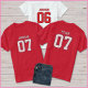 This jersey style design features 07 front and back with husbands last name on the front, first name on the back in bold white typography. Perfect as a husband and wife gift for Valentine’s Day.