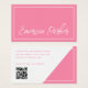 Influencer profitiert von Visitenkarten mit Ihrem Namen auf der Vorderseite in einem angesagten, handgeschriebenen Script-Schriftart. Fügen Sie auf der Rückseite Ihr Social Media Handle und Ihre Website hinzu und passen Sie den QR Code an. Rosa und weiß. Farben können mit dem Designwerkzeug angepasst werden.