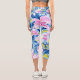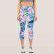Trendy Stylish Blue Pink Lilly Floral Muster Capri Leggings