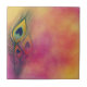 Elegantes dekoratives künstlerisches Design mit drei Pfauenfedern auf pastellfarbenem Hintergrund.