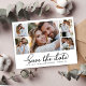 Elegante Minimalistische 5 Foto Collage Wedding Save The Date Cards, die ein modisches Kalligrafieschrift und ein ausgeklügeltes in Schwarz und Weiß präsentieren. Diese Kollektion ist speziell für moderne Hochzeiten konzipiert, die einen zauberhaften und romantischen Reiz ausstrahlen. Mit einer anmutig arrangierten 5-Foto-Gitterkollektion und einem handgeschriebenen, geschwaschenen Schwanz-Schriftart erfassen diese Karten das Wesen zeitgenössischer Eleganz. Sie können jede Karte leicht anpassen, um Ihren einzigartigen Stil zu reflektieren, indem Sie hochgeschätzte Details und Bilder der Hochzeit mit einem raffinierten und raffinierten Mittel, um Ihren außergewöhnlichen Tag zu verkünden und zu feiern.
