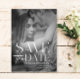 Moderne Hochzeit Speichern Sie die Date-Vorlage Postcard mit modischem Typografie-Overlay-Text. Template verfügt über ein vertikales Foto. Foto und Text können für ein einzigartiges Design für Ihren besonderen Tag personalisiert werden.