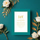 Moderne vereinfachte Hochzeitseinladung in Akzenten von Teal und Gold, angepasst an Ihre Veranstaltungsspezifikationen.