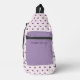 Die Trendy Violet Your Name Stripes & Blooms Sling Bag ist Teil der Kollektion "Stripes and Blume: Bath, Beach, Yoga, Travel". Die Kollektion beinhaltet alles, was mit Ihrem Bad, Schwimmen am Pool oder Strand, Entspannen dort durch Journalisieren, Yoga machen, Karten spielen oder frisbee. Und natürlich, mit Ihrem Lieblings-Rucksack, passender Toilettentüte, Beuteln und elektronischen Hüllen zum Strand zu reisen. Es gibt auch Karten, die Meetings feiern und Ihnen die Möglichkeit geben, Ihre neue Bekannte einzuladen, virtuell zu verbinden. Das mädchenhafte Design weist violette Streifen mit abwechselnden Reihen lila Blüten auf. Ihr Name ist in elegantem Schrift gedruckt. Fügen Sie Ihren Namen hinzu, um es zu Ihrem eigenen zu machen. Für kundenspezifische Designanfragen oder Hilfe bei der Anpassung, kontaktieren Sie uns bitte unter info@KBMD3signs.com.