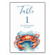 Trendy Watercolor Red Crab Nautic Tischnummer