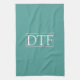 Trendy White DIY Monogram/Name LtGrey Border, Aqua Geschirrtuch