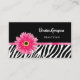 Mit dieser trendigen, schwarz-weiß zebrafarbenen Visitenkarte mit einer hellrosa gerbera daisy Blume können Sie potenzielle Kunden anziehen. Dieses Design ist perfekt für Kosmetiker oder Modeberater, kann aber für den Beruf Ihrer Wahl angepasst werden.