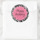 Trendy Zebra Print Pink Happy Birthday Stickers
