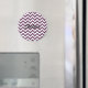 Angesagtes und modernes Trendy Zickzack Magnet. Dieser coole Magnet zeichnet sich durch ein Zickzack Zickzackmuster in lila-weiß aus. Fügen Sie diesem Design einen Text hinzu, um ihm eine persönliche Touch zu geben.