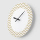 Angesagte und moderne Zickzack Wall-Uhr. Diese coole Uhr weist ein Zickzack Zickzackmuster in Beige und Weiß auf. Fügen Sie diesem Design einen Text hinzu, um ihm eine persönliche Touch zu geben.