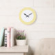 Angesagte und moderne Zickzack Wall-Uhr. Diese coole Uhr weist ein Zickzack Zickzackmuster in Gelb und Weiß auf. Fügen Sie diesem Design einen Text hinzu, um ihm eine persönliche Touch zu geben.