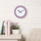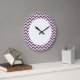 Angesagte und moderne Zickzack Wall-Uhr. Diese coole Uhr weist ein Zickzack Zickzackmuster in lila-weiß auf. Fügen Sie diesem Design einen Text hinzu, um ihm eine persönliche Touch zu geben.