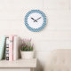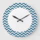 Angesagte und moderne Zickzack Wall-Uhr. Diese coole Uhr weist ein Zickzack Zickzackmuster in Blau und Weiß auf. Fügen Sie diesem Design einen Text hinzu, um ihm eine persönliche Touch zu geben.