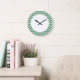 Angesagte und moderne Zickzack Wall-Uhr. Diese coole Uhr weist ein Zickzack Zickzackmuster in smaragdgrün und weiß auf. Fügen Sie diesem Design einen Text hinzu, um ihm eine persönliche Touch zu geben.