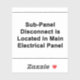 Ein Aufkleber mit dem Aufdruck "Sub-Panel Disconnect is Located in Main Electrical Panel" in schwarzen Buchstaben auf weißem Hintergrund. Das wäre etwas, das Elektriker nützlich finden würden.