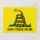 Die Gadsden-Fahne ist eine historische amerikanische Fahne mit einem gelben Feld, das eine gekochte Klappernake darstellt und zum Streik bereit ist. Unter der Schlange befindet sich die Legende "Dont Tread on Me"[sic]. Die Fahne wurde von Christopher Gadsden entworfen und trägt den Namen des amerikanischen Generals und Staatsmanns. (-Wikipedia) Hier ist es auf T - Shirt, Sweatshirts, Buttons, Karten, Geschenkartikel.