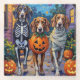 Adorable Treeing Walker Coonhunds, die in spielerischen Halloween-Kostümen gekleidet sind, tragen Kürbiseimer, während sie unter dem mondbeleuchteten Himmel tricksen oder sich behandeln. Dieses festliche Design hebt die Trikolour der Rasse, die Alarmbereitschaft und die abenteuerliche Persönlichkeit hervor, die perfekt die sprichwörtliche und dennoch lustige Atmosphäre Halloween-Abends einfangen. Eine charmante Feier für Treeing Walker Coonhound Liebhaber, Hundefreunde und Halloween-Fans gleichermaßen.