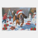 Ein beschwingter Treeing Walker Coonhound läuft glücklich durch die schneebedeckte Winterlandschaft und trägt einen festlichen roten Weihnachtshut. Dieses lebendige Design hebt den schlanken Mantel der Rasse, die sportliche Bauweise und die entschlossene Persönlichkeit hervor und erweckt gleichzeitig die Wärme und Freude der Urlaubssaison. Ein herzlicher Winter voller festlichen Beifall.