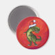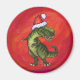 TRex Dino in Weihnachtsmannmütze auf Rot Magnet