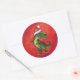 TRex Dino in Weihnachtsmannmütze auf Rot Runder Aufkleber