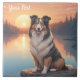 Tri Colored Collie sitzend am See bei Sonnenuntergang. Fügen Sie dieses Bild anderen Produkten hinzu. Fügen Sie auch Ihren eigenen Text hinzu. Viele Haustiere in meinem Laden.