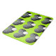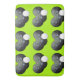 Auf Kalkgrün abgebildet sind Schüsseln und ein Jack in wiederholtem Muster