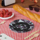 This simple paperplate has an abstract triangle pattern that features grey, white, maroon, and black colors. With a crab!