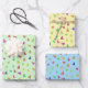 Abstrakte Kunst. Geometrische Formen in vielen Farben mit gelben, grünen und blauen Hintergründen. Maßgeschneidertes Packpapier. Party für Groß und Klein.