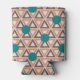 Dieser kann kühler hat ein geometrisches Design wiederholt braun-bräunliche Dreiecke mit türkisfarbenen Kreisen oben auf einem Feld von off-weiß. Das gleiche Design in verschiedenen Farben gewollt? Nachricht.