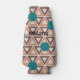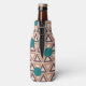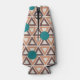 Diese Flasche cooler hat ein geometrisches Design aus sich wiederholenden braunen und bräunlichen Dreiecken mit türkisfarbenen Kreisen oben auf einem weißlichen Feld. Das gleiche Design in verschiedenen Farben gewollt? Nachricht.