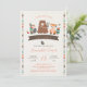 Spaß und bunte Babydusche mit einem Stammthema. Das trendige Design zeichnet sich durch niedliche Kreativzeichen wie Bär, Esel und Fuchs aus, die in einem Stamm aussehen. Diese Karte ist auch ideal für ein Waldthema oder ein Waldthema. Der Texturhintergrund fügt einen rustikalen Look. Die warme Farbpalette ist geschlechtsneutral. Die Seitenränder sind aus Pfeilen. Die Worte "Baby Shower" werden auf einem mittleren Banner mit einem niedlichen Vogel unter dem Banner platziert.