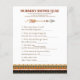 Tribal Pfeil Babydusche Spiele mit Babywörtern auf der einen Seite und Kinderzimmer Rhyme Quiz auf der anderen Seite. Der Flyer dieses zauberhaften Babyduschspiels macht Spaß und ist sparsam! Gib sie deinen Gästen, die sie auffordern, nicht zu schauen, und starte dann die Uhr. Wenn die Zeit abgelaufen ist, lesen Sie die Antworten und die Person mit den besten Antworten gewinnt einen Preis. Dreh eine Münze oder Ähnliches für einen Krawatte-Breaker. Sie können die aktuellen Wörter und Fragen durch eigene ersetzen. Hier sind die Antworten auf die Spiele: Word Scramble Answers: 1. Bassinet 2. Windeln 3. Flasche 4. Krippe 5. Autositz 6. Mobil 7. Shampoo 8. Handtuch 9. Baby Wipes 10. Schnuller 11. Schritt 12. Hintern Kinderzimmer Rhyme Quiz Antworten: 1. Drei 2. Abfahrt 3. Früh morgens 4. Lachte, Löffel 5. Blick auf Glas 6. Grün und Gelb