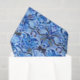 Gewebepapier in einem Batik-Muster wiederholender Formen, mit einem Stammtisch inspirierten Thema, in Indigotönen und Himmelblau, auf weißem Hintergrund