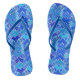 Flip Flops in einem afrikanischen inspirierten zeitgenössischen Nehmen an einem Stamm Textil, gerendert in einer batik gefärbt Textur - Kobaltblau, Ceruléblau und Türkisblau, mit weißem Akzent