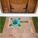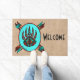 Brighten Sie Ihre Zuhause mit diesem einzigartigen "One of a Kind" Tribal Bären Pfow Doormat! Es verfügt über eine Indianerbärenpaw auf türkisfarbenem Hintergrund...Umgeben von einer Südwestgrenze in Türkis, Schwarz und Orange Flammen. Dies ist ein originelles "One of a Art" Art Design von Künstler Kerry Miller.