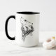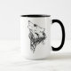 Ein schwarzer Stammwölf heult vor einem weißen Hintergrund