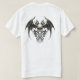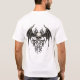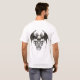 A stylized graphic of a human skull centered between two large, leather-textured wings. The entire piece is framed by sharp, curved tribal line art that creates a shield-like silhouette. The shading is gritty and textured, giving it a traditional pencil or charcoal sketch look.