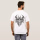 A complex, symmetrical piece of tribal line art that forms a tapered, heart-like silhouette. The design features elegant spiral flourishes at the top and interlocking sharp blades throughout, rendered with a metallic, shaded texture