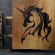 Schwarzes Stamm Unicorn Profil vor einem steinernen Hintergrund.