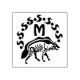 Eine Illustration einer gestreiften Hyäne, die unter der Sonne läuft. Das Bild wurde in einem schwarzen Tinte Stamm Tattoo Stil gemacht. Zwischen der schwarzen Sonne und der schwarzen Hyäne ist der Buchstabe M, m ist für Monogramm kurz und kann auf Ihre Wünsche personalisiert werden.