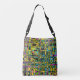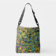 Diese Tasche präsentiert einen abstrakten Wandteppich in verschiedenen Blautönen, Rosa, lila, Gelb, Grün, Schwarz und mehr!