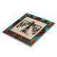 Brighten Sie Ihre Zuhause mit dieser einzigartigen "One of a Kind" Tribal Thunderbird Keramik Tile! Es verfügt über einen Indianerstamm Thunderbird auf einem Tan Sandstone Hintergrund...Umgeben von einer Südwestgrenze in Türkis, Orange & Schwarz.