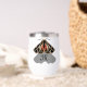 Eine Abbildung eines Tigermotts, der über seinen Schatten fliegt. Der Insektenflügel ist breit genug verteilt, um einen Rahmen für das Monogramm zu bilden. Das M ist für Monogramm kurz und kann für Ihren eigenen Initial personalisiert werden. Innerhalb der Flügel wurden die schwarzen Markierungen zu schwarzen Tinte Stammeszeichen gemacht.