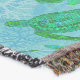 Stammes grüne Meeresschildkröten mit Korallenhintergrundmuster für die DIY-Nähprojekte, die Küsten- oder Strandthemen sind.