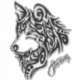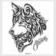 Intrikate Mustergestaltung eines einsamen Wolfenkopfes
