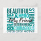 Es gibt eine Person in deinem Leben, die dir gezeigt hat, was Heldensein bedeutet. Sie ist der ultimativen Gegnerin ausgesetzt und hat es mit unglaublichem Mut, enormer Stärke und außerordentlicher Anmut getan. Diese phantastische Person ist dein Freund. Mit unseren Tribute Square-T - Shirt, Geschenken und Kleidung, die eine Collage von einprägsamen Wörtern enthalten, die ihren Heldentum in einem auffälligen quadratischen Textmuster in unterschiedlichen aquamarinen Farbtönen und einem aquamarinen Ovarialkarzinom-Unterstützungsband zusammenfassen, ehren, feiern und unterstützen.