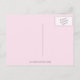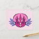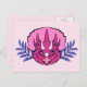 Dieses hübsche Postkartenformat wird von einem gürtelrosa und lila Triceratops-Portrait begleitet, das von abstrakten lila Blätter flankiert wird.