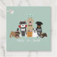 Niedliche Darstellung von Hunden und einer Katze mit Halloweenkostümen.
